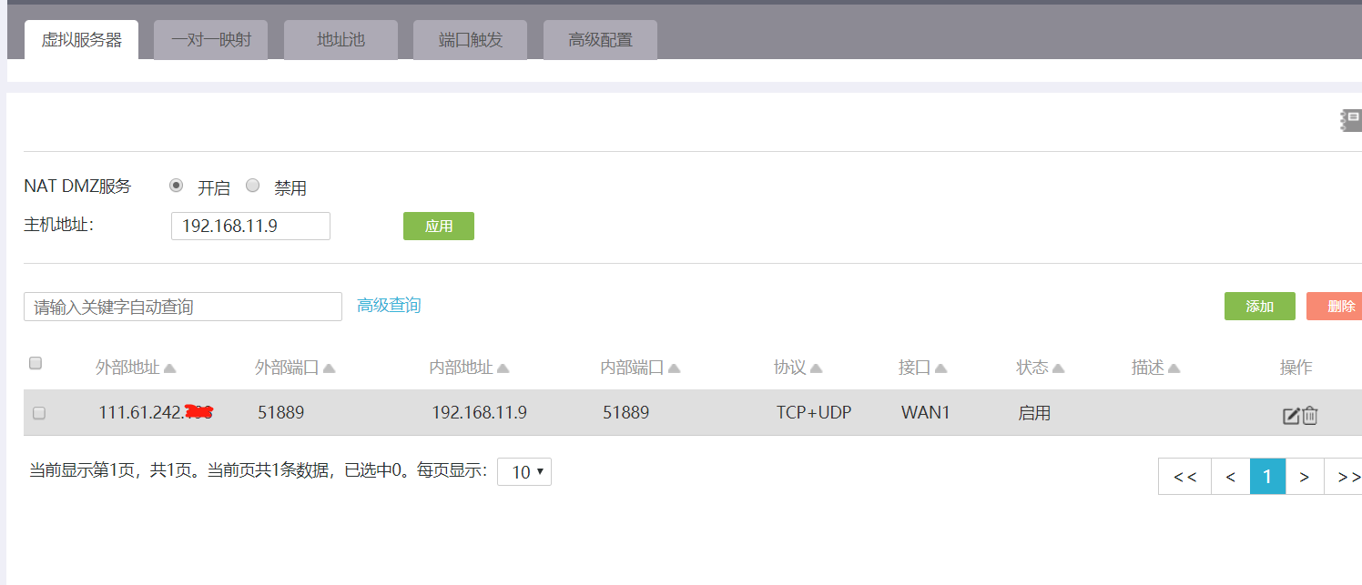 刚买了一台小3200G3上手 WAN口上接固定外网地址,LAN1口接交换机,在端口上划分192.168.10.X办公网,LAN2口 划分192.168.11.X接服务器交换机 办公交换上挂的几台小TP-LINK做为WIFI用, 老掉线 不知道设置的对不对,想把11.9IP地址做NAT映射到外网也映射不过去。求指点