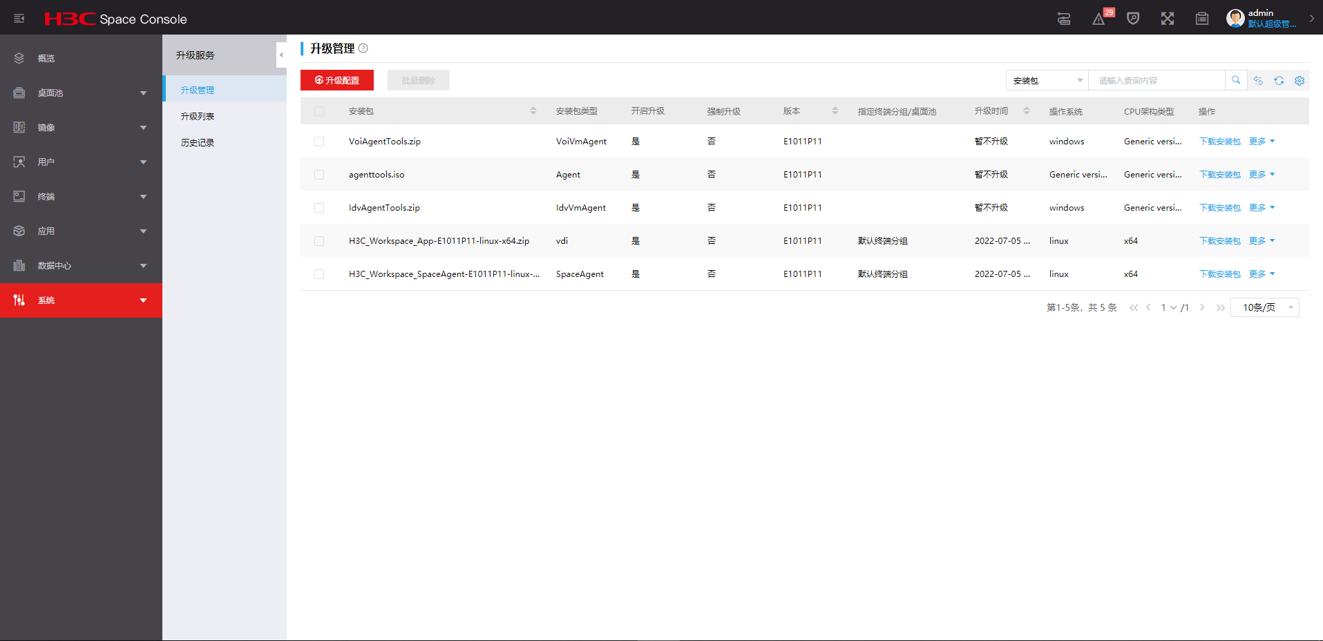 2)解压升级包(unzip H3C_SpaceOS-E1007L01-Upgrade-arm32.zip)