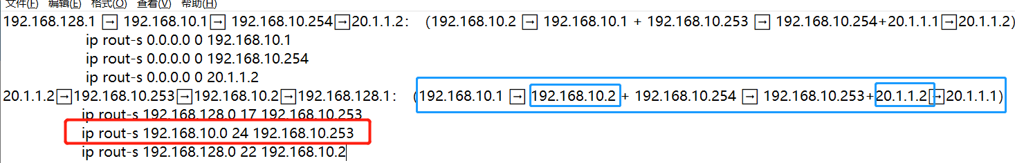 A-B-C-D三个设备一字互联,A(loopback0:192.168.128.1/22,与B互联地址192.168.10.2/30)、B(与A互联地址192.168.10.1/30,与C互联地址192.168.10.253)、C(与B互联地址192.168.10.254/30,与D互联地址20.1.1.1/24)、D(与C互联地址20.1.1.2/24)