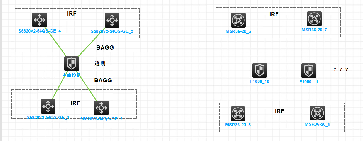 1.如果上下两组IRF为一个IRF系统的话,建议防火墙做透明主备使用