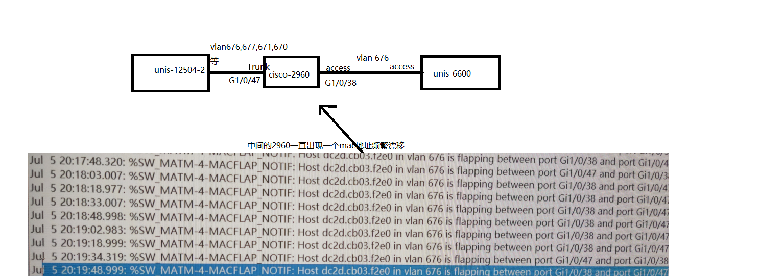 已排查网络中是没有环路的,mac一直在2960的两个接口进行漂移