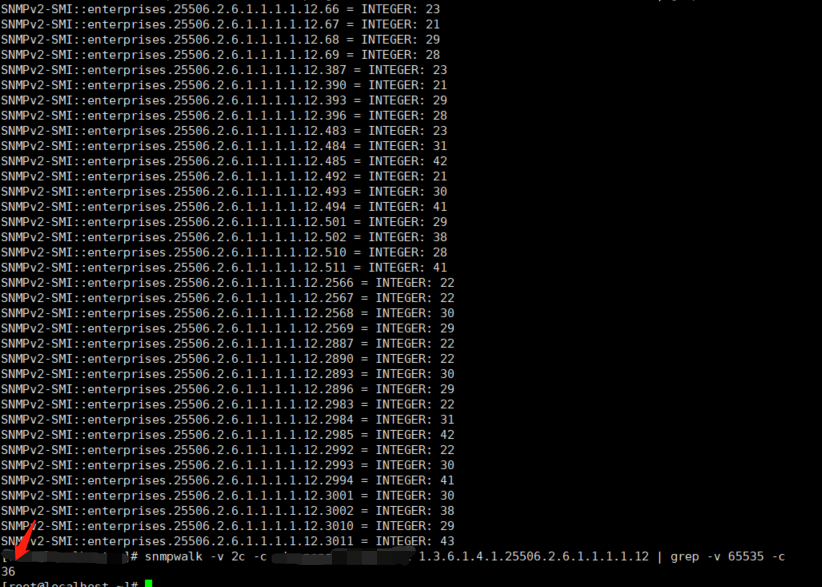 s7506e型号设备查到获得温度的oid为 1.3.6.1.4.1.25506.2.6.1.1.1.1.12 获得信息有36个温度传感器,但是登录设备使用命令查看只有20个温度传感器信息。请问是已那个为准?