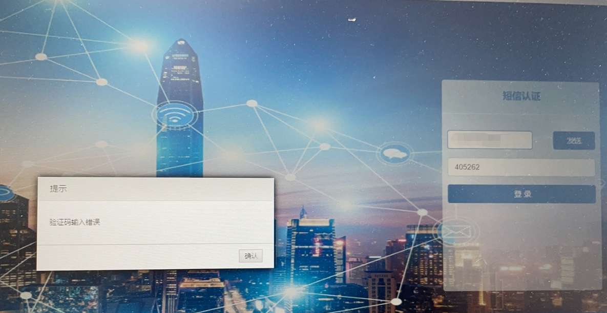 认证界面可以打开,短信验证码可以收到,输入短信验证码后,点击登录提示验证码输入错误!