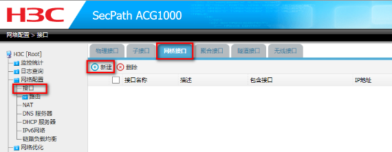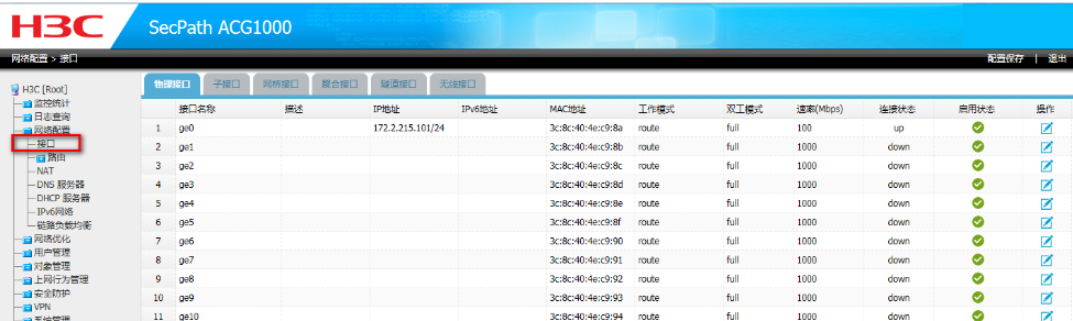 通过浏览器打开ACG(默认是基于https的),点击“接口”选项如下所示: