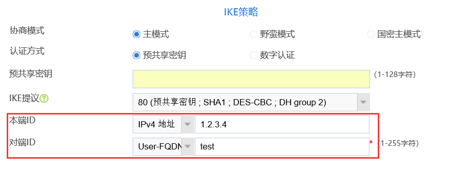 如果两端都有公网地址,本端id和对端id分别为本端公网地址和对端公网地址
