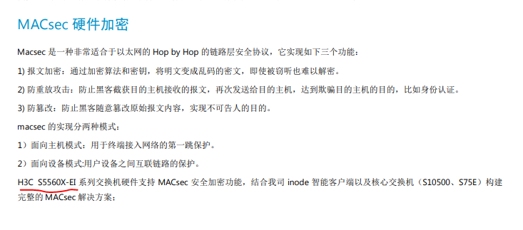 我去看了H3C的官方介绍,S5560X-EI 是提供Macsec功能