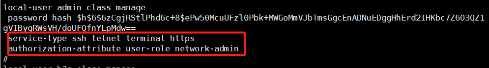 [Sysname-luser-manage-admin] authorization-attribute user-role network-admin
