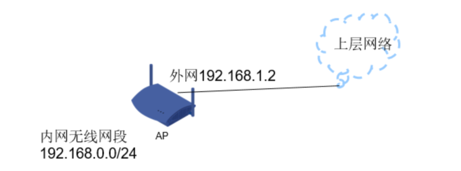 AP发射无线信号让无线终端连接并获取地址上网。无线PC自动获取192.168.0.0/24网段,网关为vlan1口地址192.168.0.50,DNS服务器地址为114.114.114.114,外网运营商提供的ip:192.168.1.2 掩码255.255.255.0,外网网关:192.168.1.1。