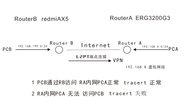 目前VPN客户端内网电脑访问VPN服务器端正常, 反向不通,无法访问。