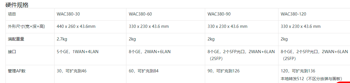 如果看AP数的话,目前只有WAC380-90和WAC380-120可以支持