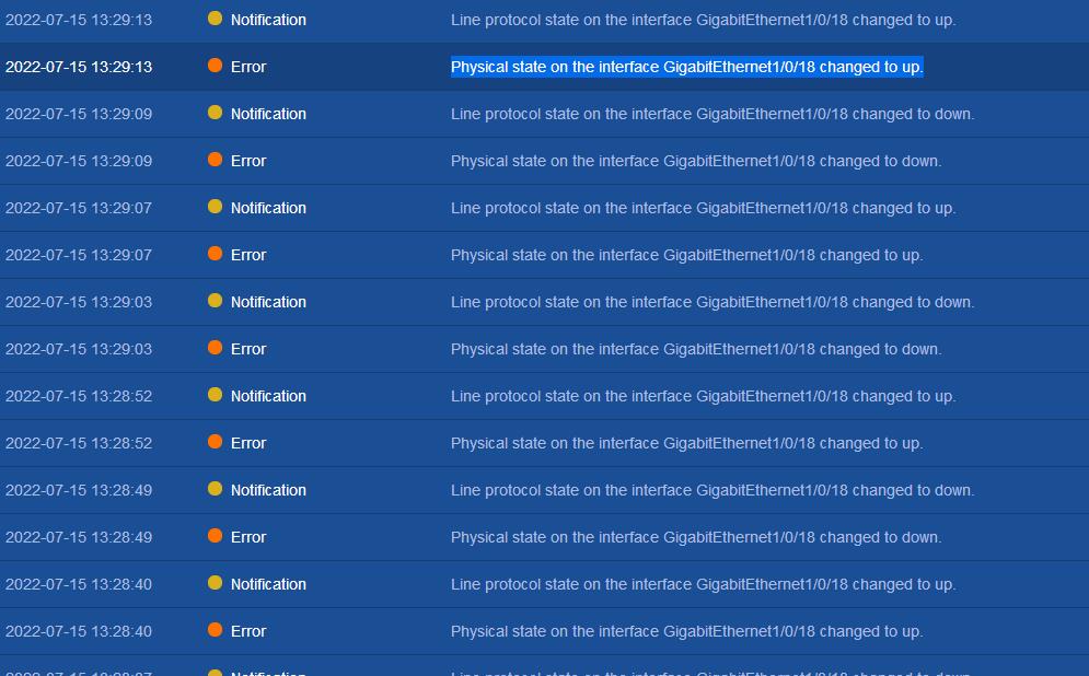 Physical state on the interface GigabitEthernet1/0/18 changed ,我检测网线是正常的?怎么报那么多错误to up.