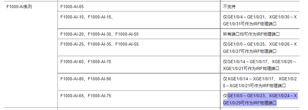 不同类型IRF物理端口需要采用不同的模块或线缆进行连接: