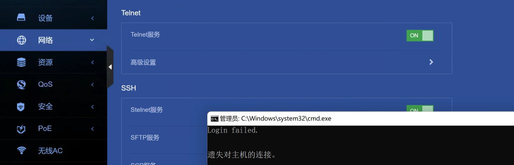 WEB 开启 telnet 用户名也勾选了 telnet ssh 远程访问 提示 Login failed 还需要做哪些设置 :::