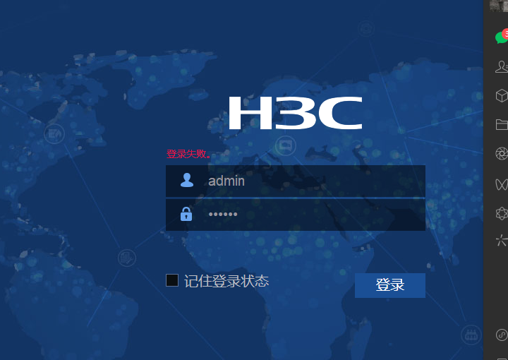 没有提示密码错误等信息,第一次设置华三的机子有点懵。