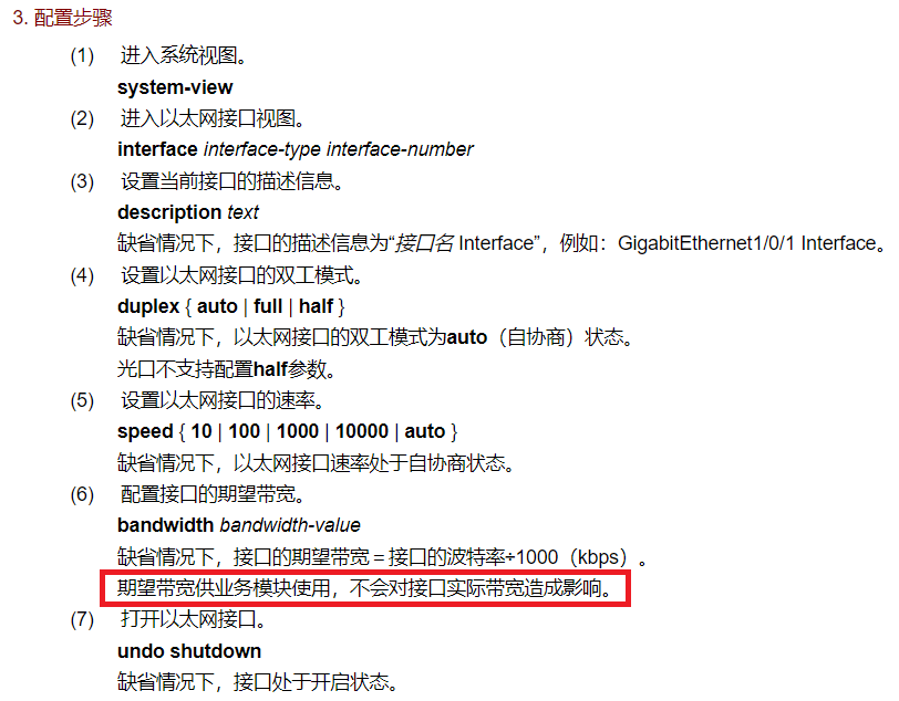期望带宽只有配合其它功能使用的时候才会生效,比如ospf的开销、带宽保障的带宽参考值等。