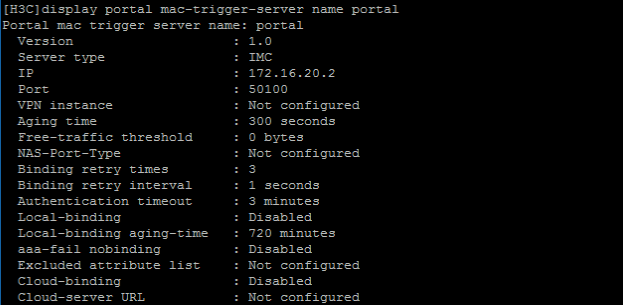 在AC侧使用命令display portal mac-trigger-server name portal: