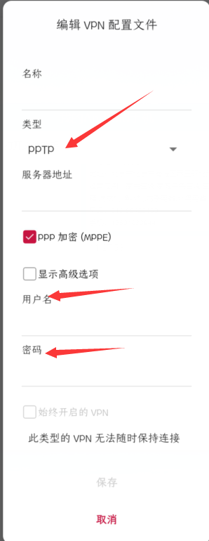 我用手机配置vpn想连接公司内网,填写了服务器ip地址 不带http:就单纯写入ip地址 然后填写了lns的用户名密码 但是我发现保存按钮是灰色的 是我少填写了什么配置吗 求助大神们!!!谢谢!!
