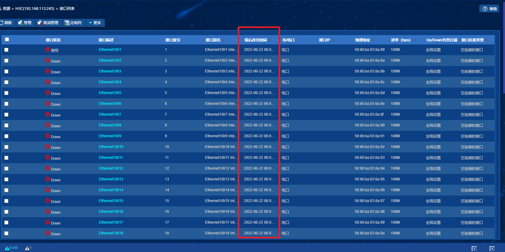 如下图IMC有一个设备的接口列表,里面有一个最后改变时间,如下图,这个最后改变时间是什么改变?up/down? 还是配置改变?
