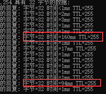 对于交换机来说,偶尔一个大延迟是正常的,建议两台电脑互ping测试