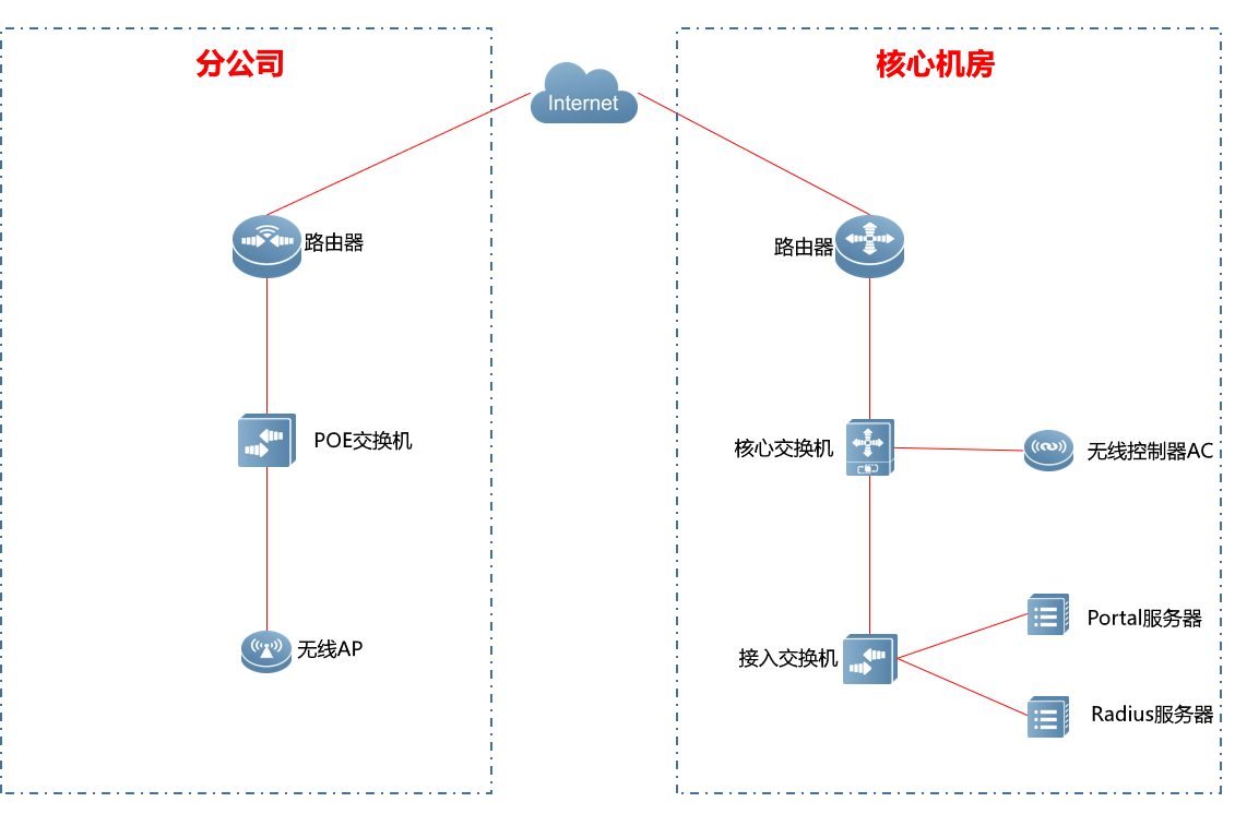 1.AP跨公网上线,本地转发,集中认证。认证服务器为第三方。