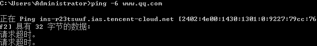 # 以上配置完成后,检查IPv4 host与IPv6 server的连通性。以IPv4 host A ping IPv6 server为例: