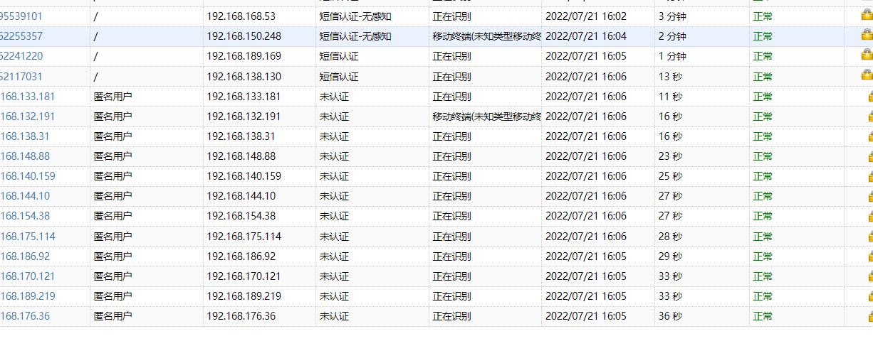 ACG1000-ME做了无线AP的出口,做了短信认证,为什么还会有匿名用户存在呢,而且匿名用户在不断增加