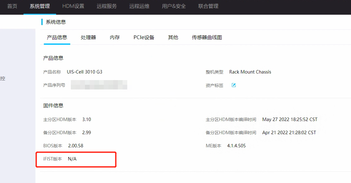为啥在UIS-Cell 3010G3服务器的HDM中,看不到ifist的版本信息?