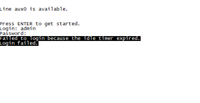 接入时输入账号密码出现Failed to login because the idle timer expired. Login failed.如何解决不能重启设备