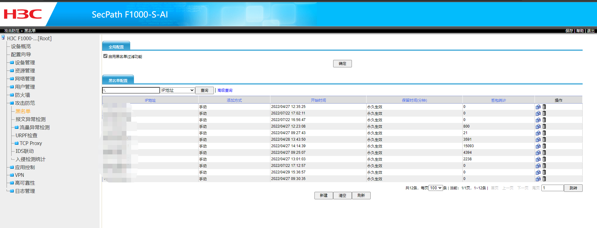 H3C SecPath F1000-S-AI 攻击防范-黑名单里的IP怎么批量添加?