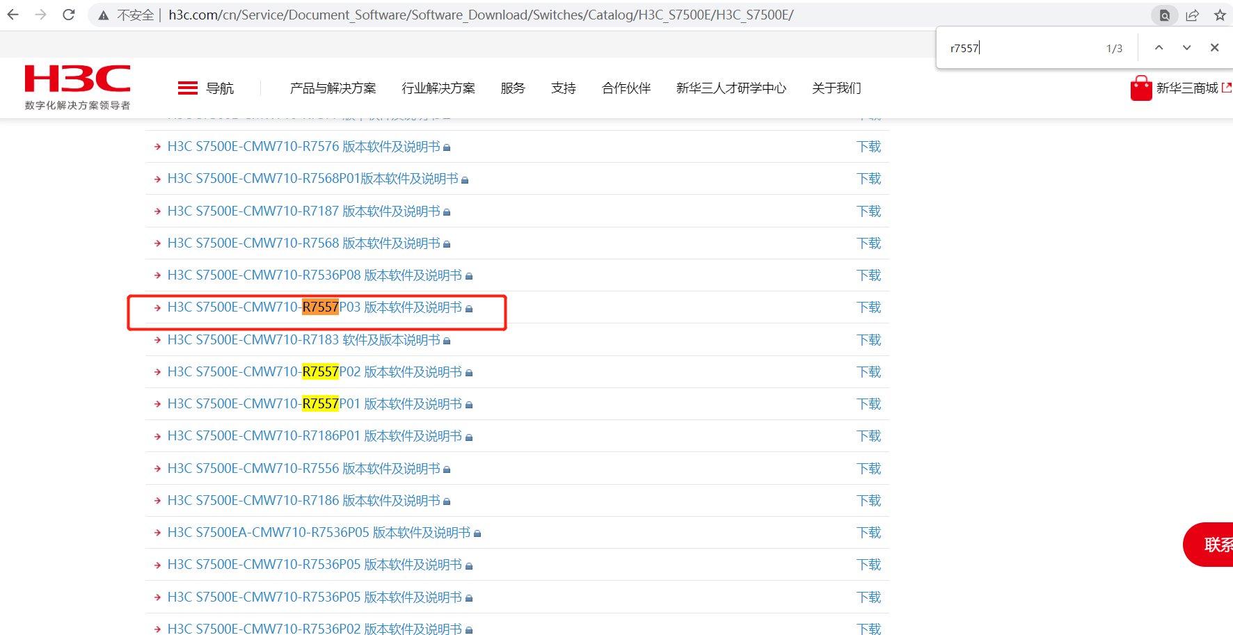 您好 打扰了。再请教下,目前交换机上的OS版本是:s7500e-cmw710-boot-r7557p03.bin、s7500e-cmw710-system-r7557p03.bin。您给我的产品页面上,目前r7557的也是p03,麻烦指导下我可以选择那个软件包进行升级。