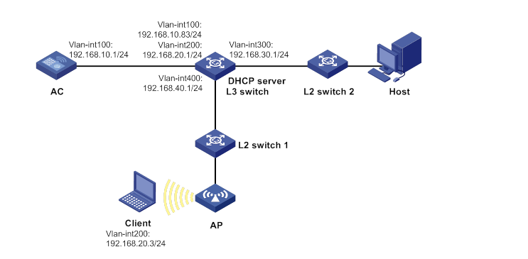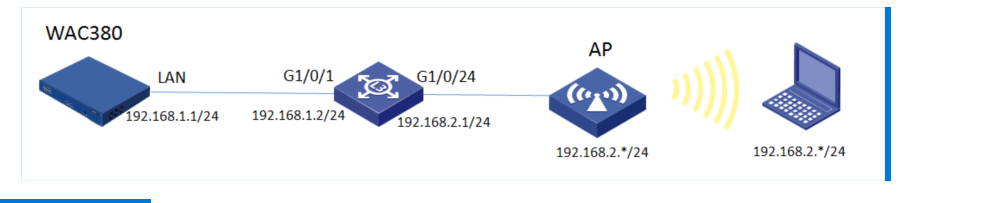 当AP的管理地址与AC的LAN口地址不在同一个网段时,我们称之为三层注册。本案例介绍通过命令行给WAC380 配置AP三层注册,配置无线加密,同时使用WAC380给下联的AP和无线客户端分配192.168.2.0/24的地址。