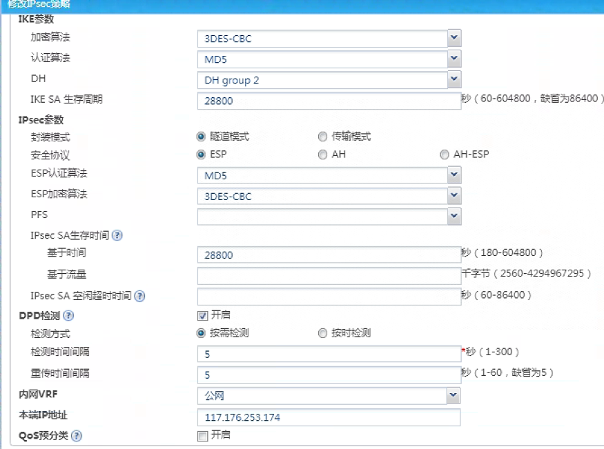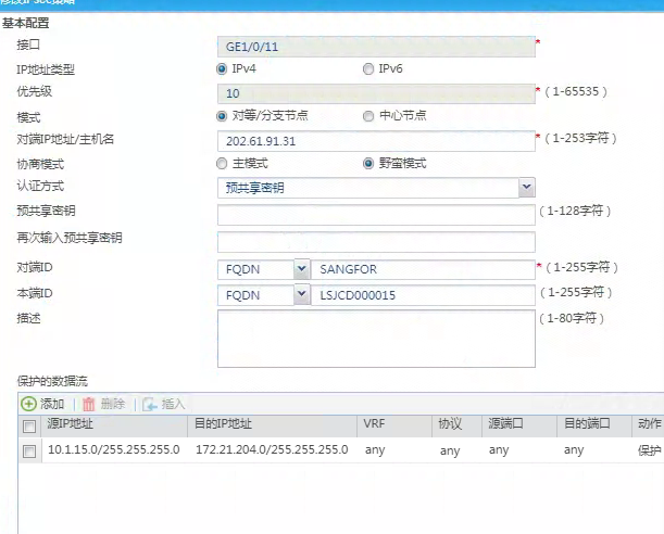 感兴趣流那里,本地和对端的,源地址、目的地址要相反