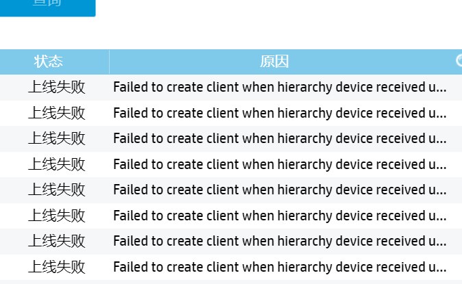 客户端上下线记录里很多上线失败记录,原因是“Failed to create client when hierarchy device received upstream add mobile message 。错误代码2129”。大概是什么原因造成,该往哪个方向排查?