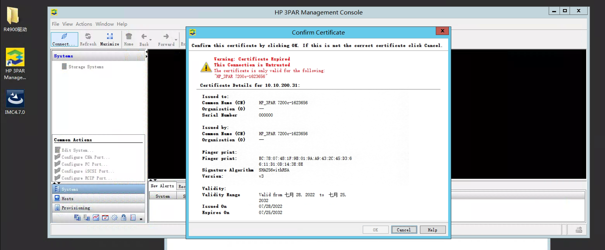 通过imc添加3par p8000存储系统,证书在有效期内,但无法添加,请问如何解决这个问题(存储型号是UIS-P8200-2N)?