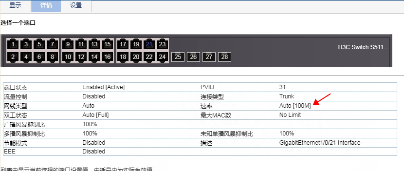其它几个连接无线AP的端口显示的都是ATUTO [1000M],就一个显示ATUTO [100M],这是为什么啊?