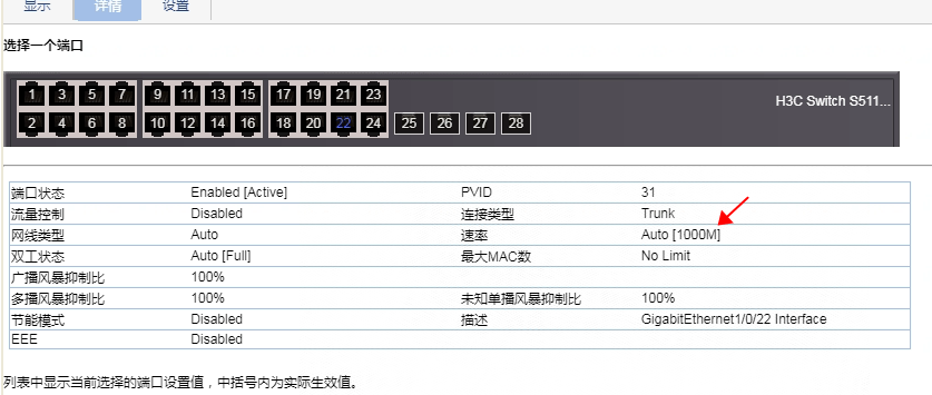 交换机连接无线AP的端口为Trunk\速率Auto