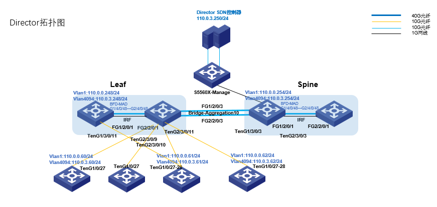 请教下大神们,这是我这边现场组网拓扑图,半自动化上线vlan1获取不到地址,手动写地址可以ping通控制器,vlan4094走vpn隧道在Spine上做了中继可以正常获取地址,是什么原因呢?分别在Spine接S5560X-Manage的接口和Bridge-Aggregation10开启了
