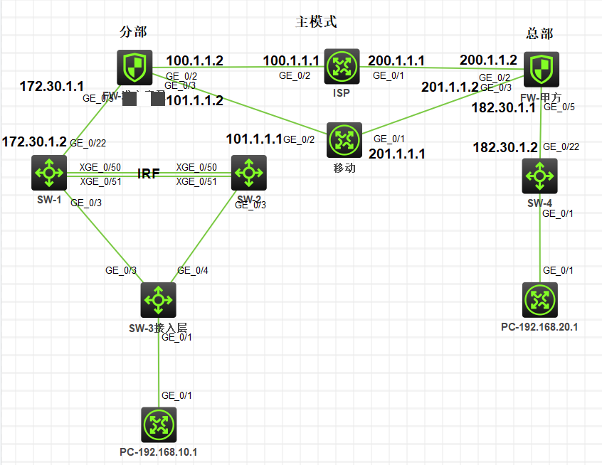 分部到总部,分别做了两条IPSEC VPN。两个运营商