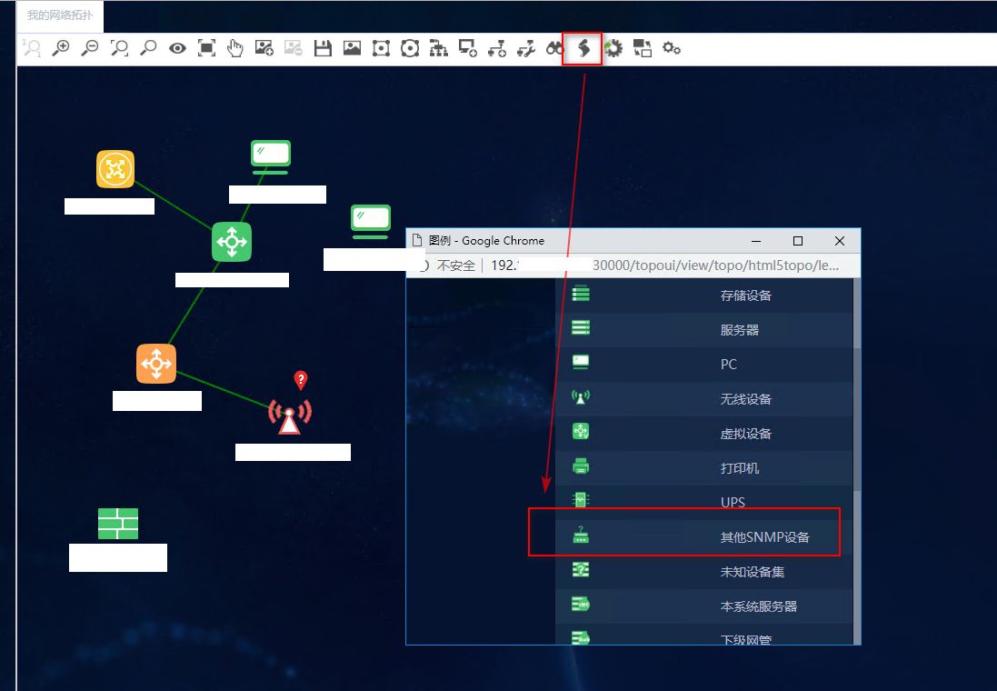 部分设备在拓扑里显示不出来,比如透明设备。或者原设备就是未识别的状态,根据IP地址在资源下找到此设备查看是否识别正常