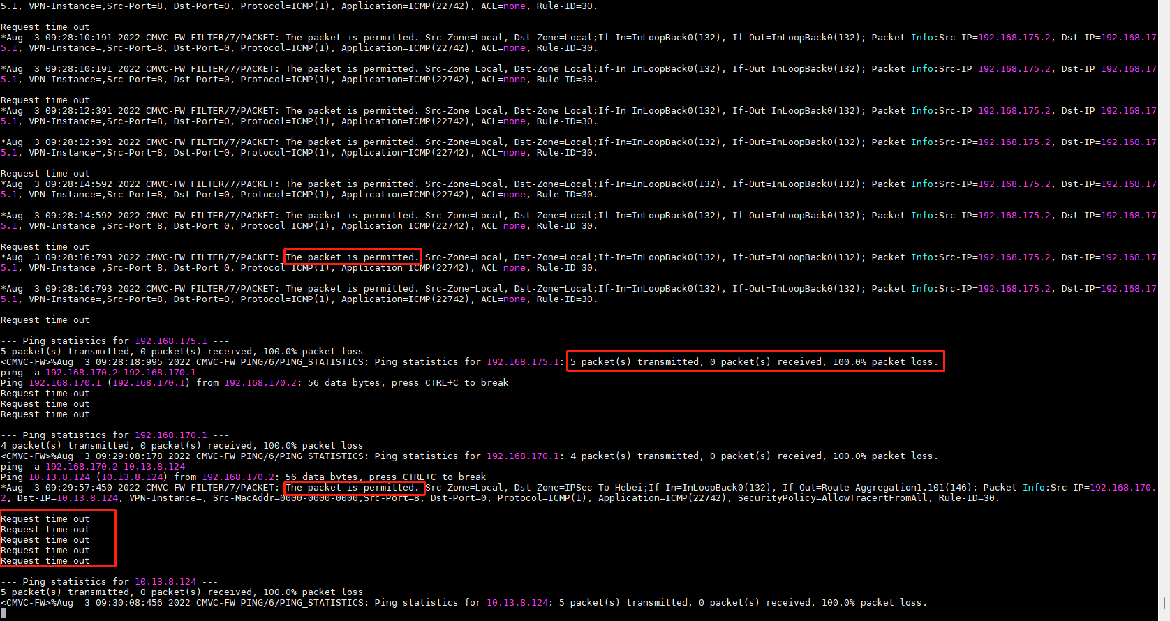 debuging 显示数据包是permit的,但实际确实request timeout。