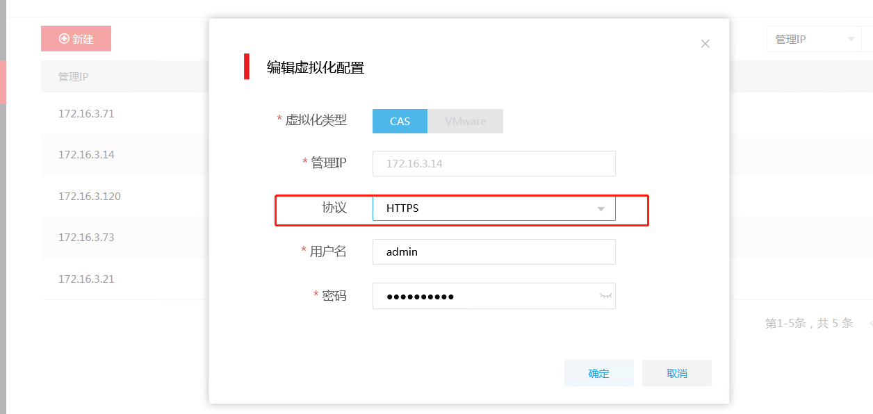 虚拟化配置中找到CAS的条目,将协议http改为https,另外记得强制刷新下页面,看虚拟化中能否正常显示CAS的数据,即可判断是否修改成功