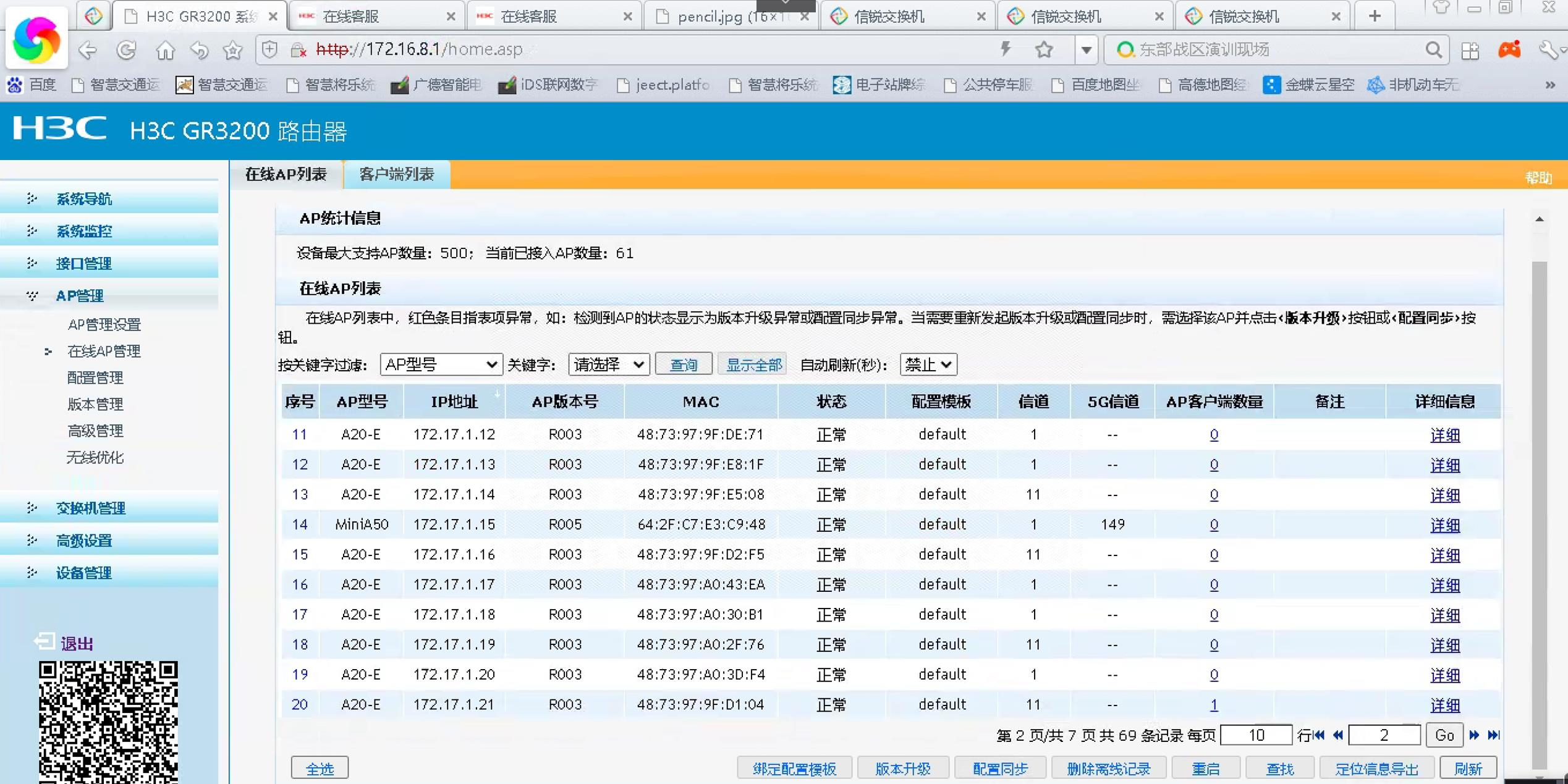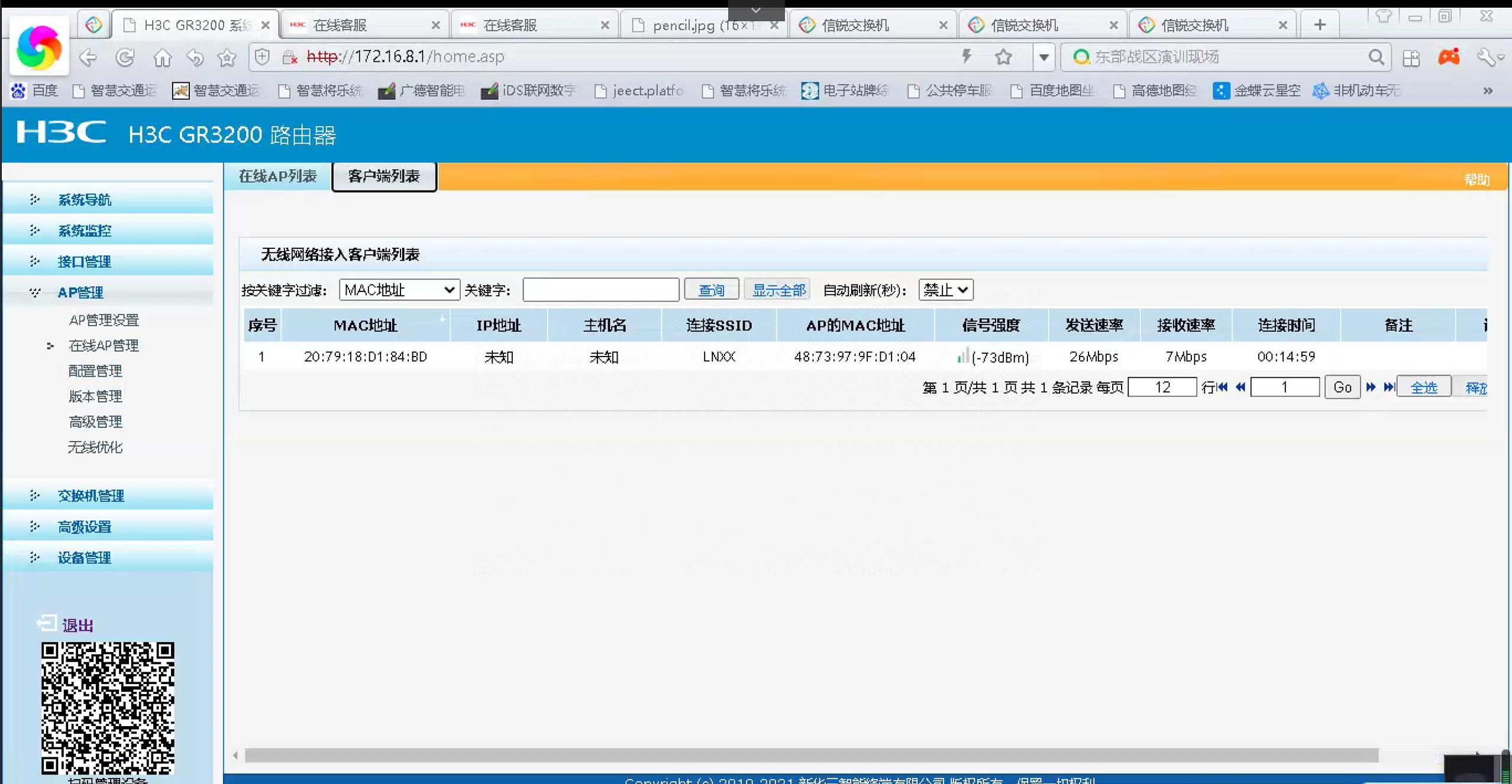 GR 3200使用AC 模式,使用桥接vlan 1,但交换机为信锐交换机,接口都为trunk all pvid 8,
