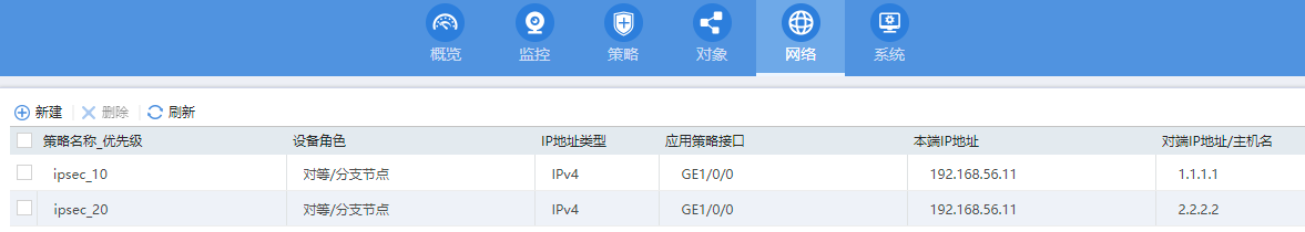 每个区域都只有1个互联网出口,当我再建一个ipsec策略的时候,设备角色选择的对等/分支节点,接口在选择公网ip端口,就会把之前那个给顶掉,这要怎么解决