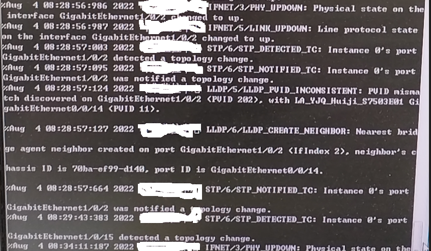 stp_detected_tc,然后核心交换机中整个网络就全部掉线了,客户机PING网关也PING不通。