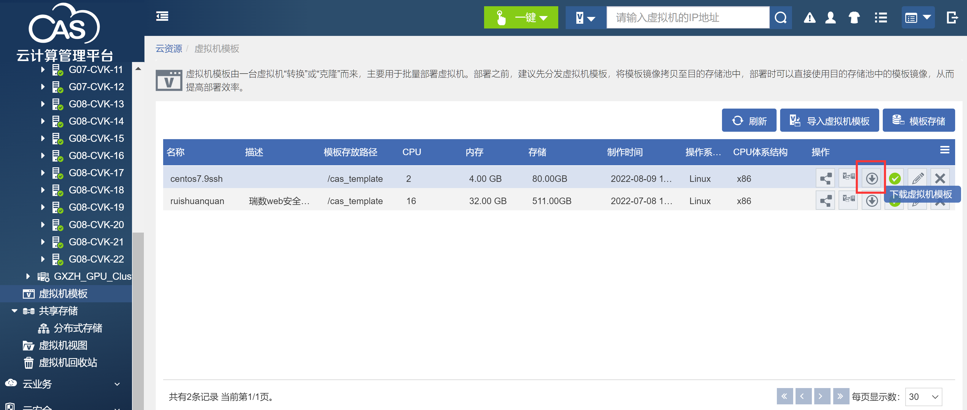 cas虚拟机模板导出