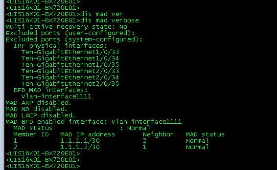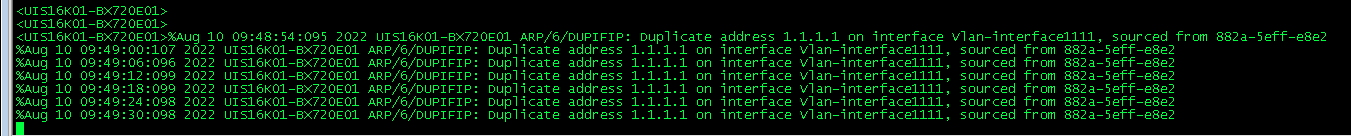 如题,两台同款同版本交换机IRF堆叠,配置了MAD BFD分裂检测,且分裂检测状态是normal,但一直在输出检测地址冲突的日志,各位大佬有分析思路吗?
