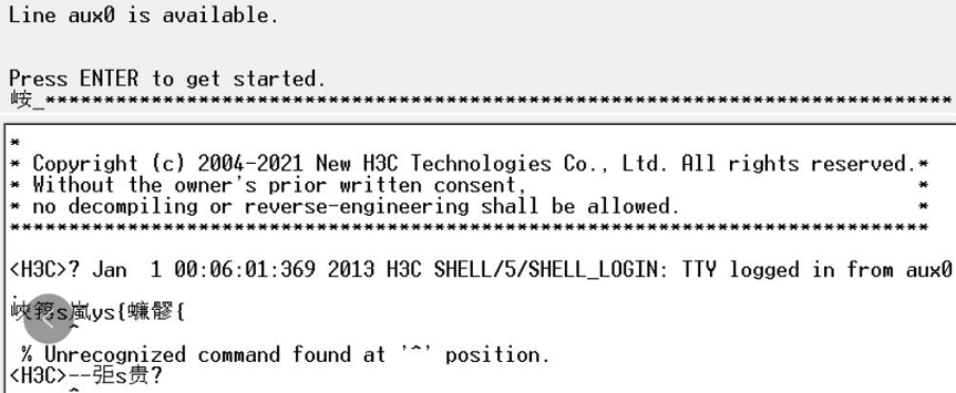 LS-3100V3-52TP-SI-H1 第一次配置,com口能连进去,可是在出现<H3C>提示,光标闪动时,输入命令,确显示出乱码,请问如何解决?(而换成另外一台交换机,可以正常输入命令)