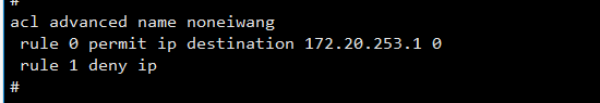 因为内网网段太多了,而且后续还在不断的增加中 ,所以在ACL中一条条增加较麻烦,想先只放通允许的,禁访所有的