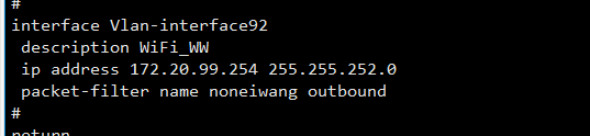 内外网的网关都在核心交换机上,需要在核心上设置终端拿了外网地址(VLAN92对应地址段)上来后只能通过核心到公网的下一跳地址(172.20.253.1)出去,核心上的其它地址都不能访问,配置如下好像不行,需要怎么调整呢