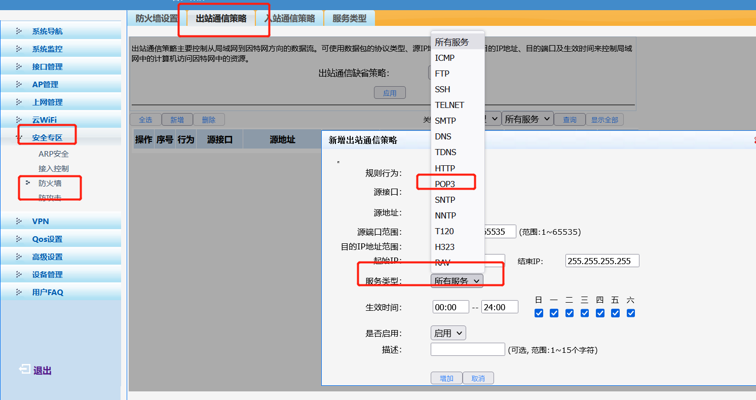 如何设置3200G2限制外网连接,不允许连接外网,但是可以访问内网,和外网邮件服务器
